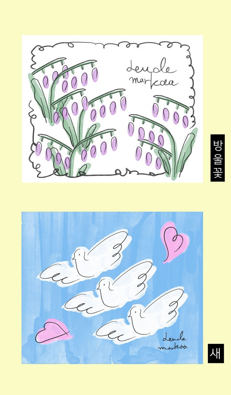 첫번째 시리즈는, 방울꽃과 새 2가지입니다.
