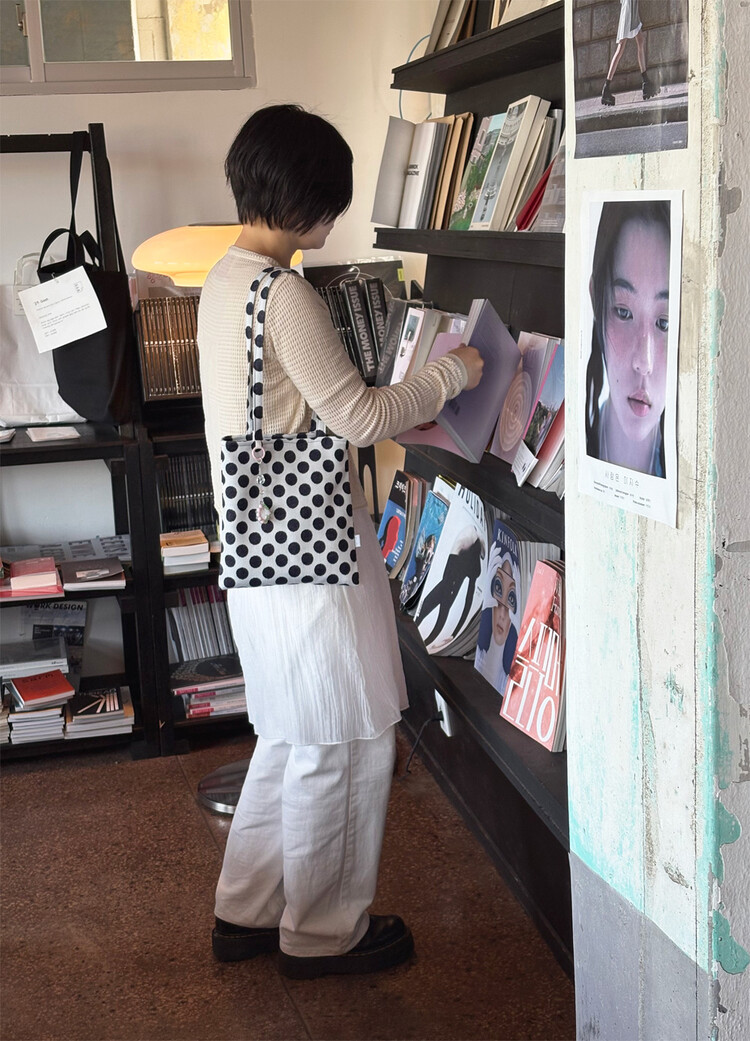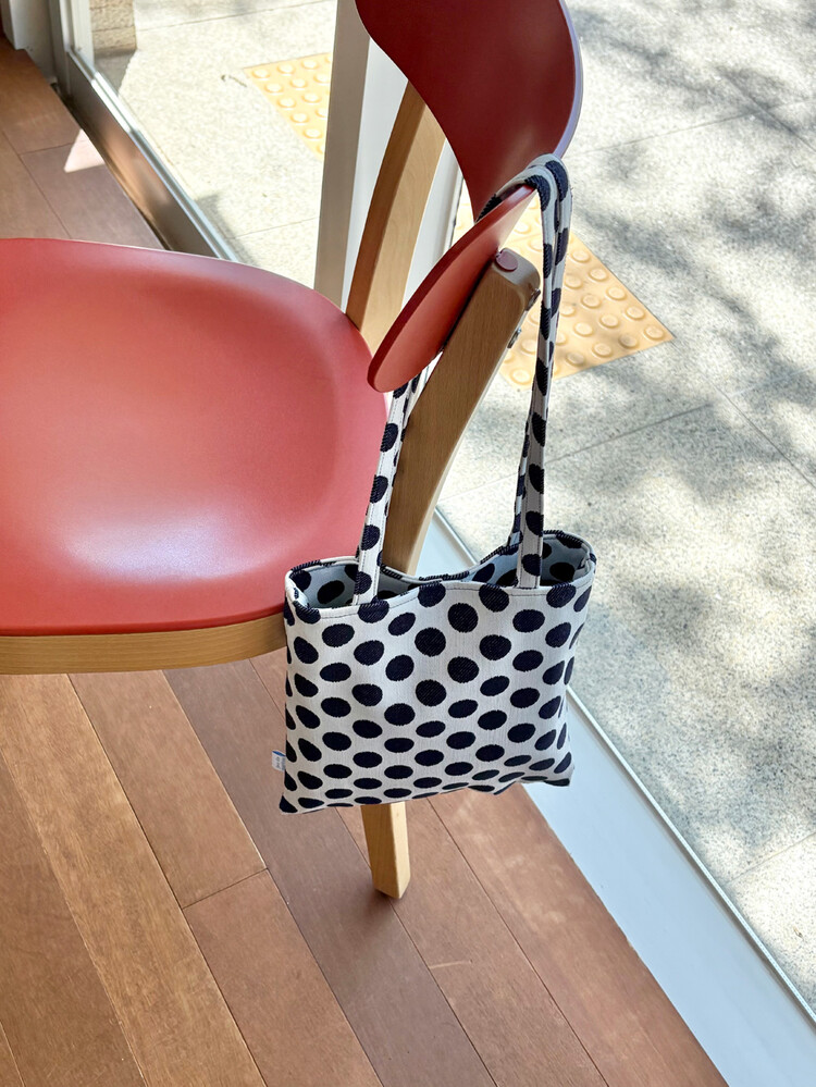 · 위트있고 발랄한 도트무늬를 조금은 차분하게 만들어주는 무드의 디자인.
