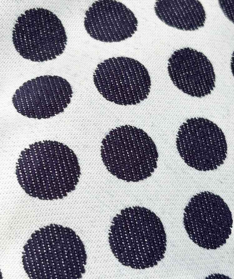 짙은 네이비 컬러 위에 입체적으로 짜인 도트,