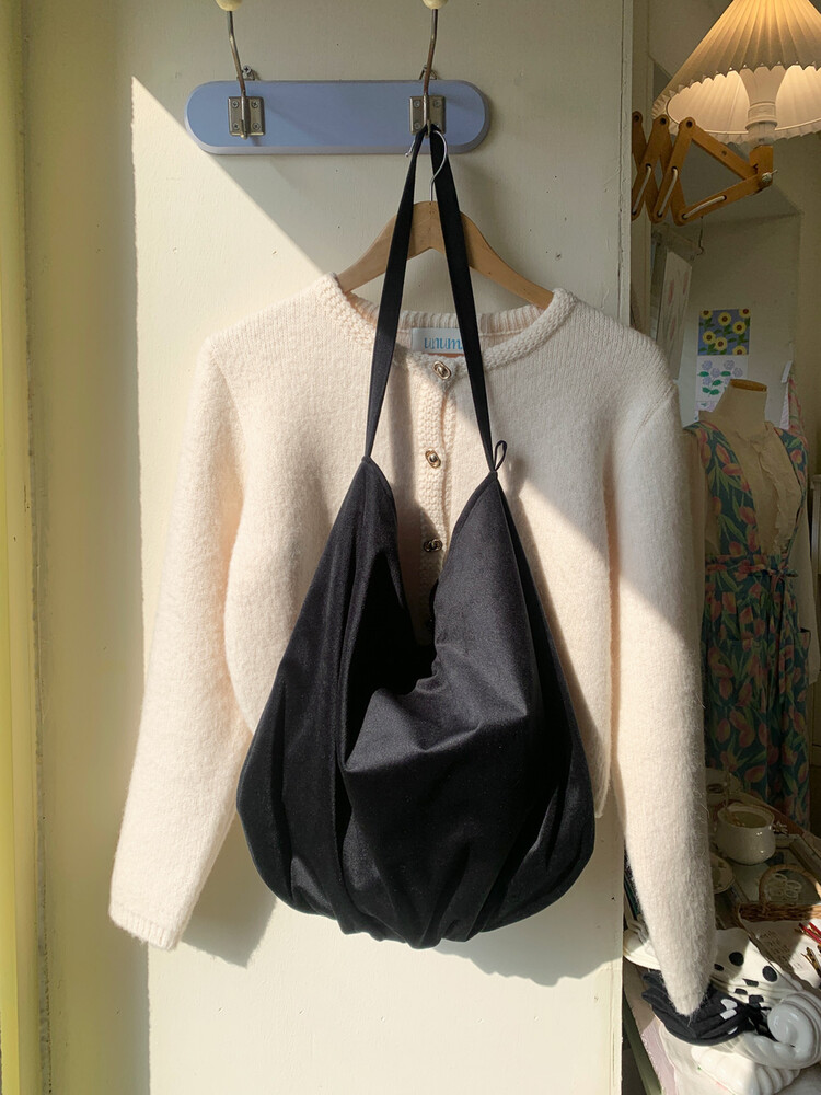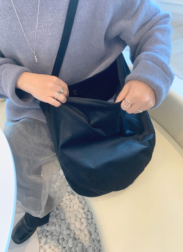 부드러운 촉감의 벨벳 원단으로 만든 숄더백입니다.