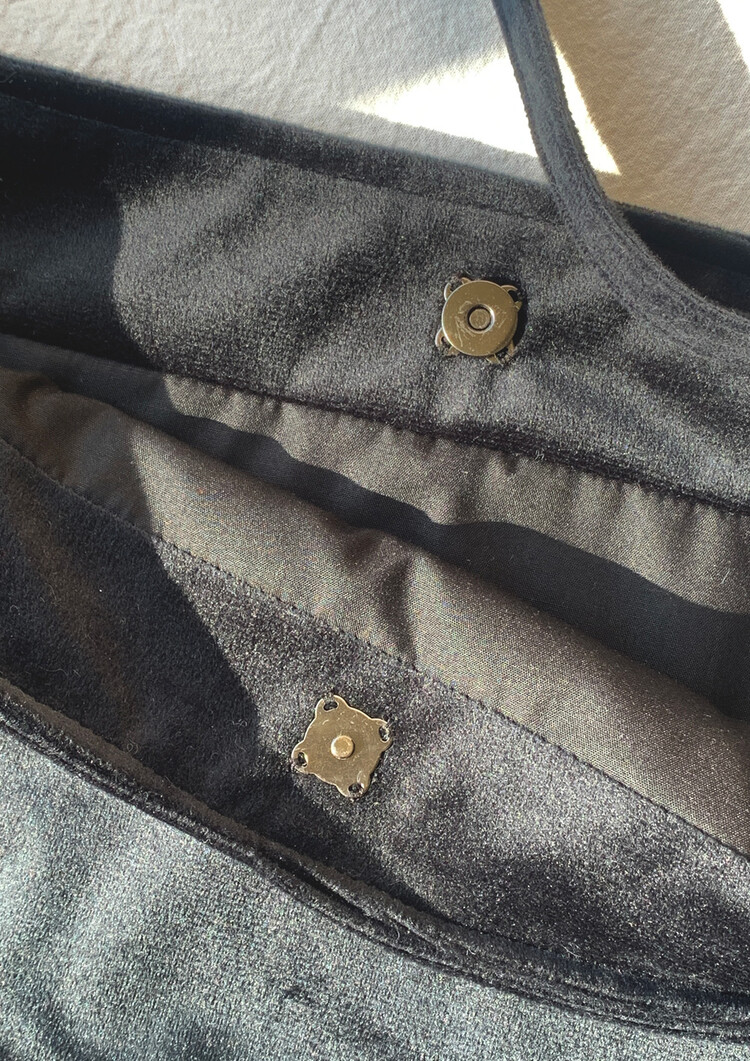 가방 입구부분에 자석단추를 부착하였습니다.