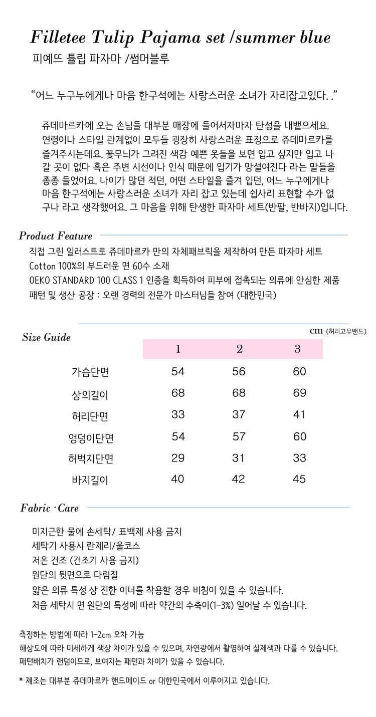 피예뜨 튤립 파자마 세트 - 썸머 블루